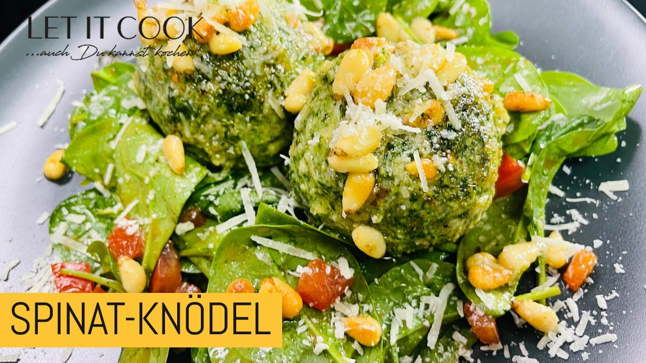 Feine Spinatnödel mit Parmesan-Pinienkern Butter und Spinatsalat