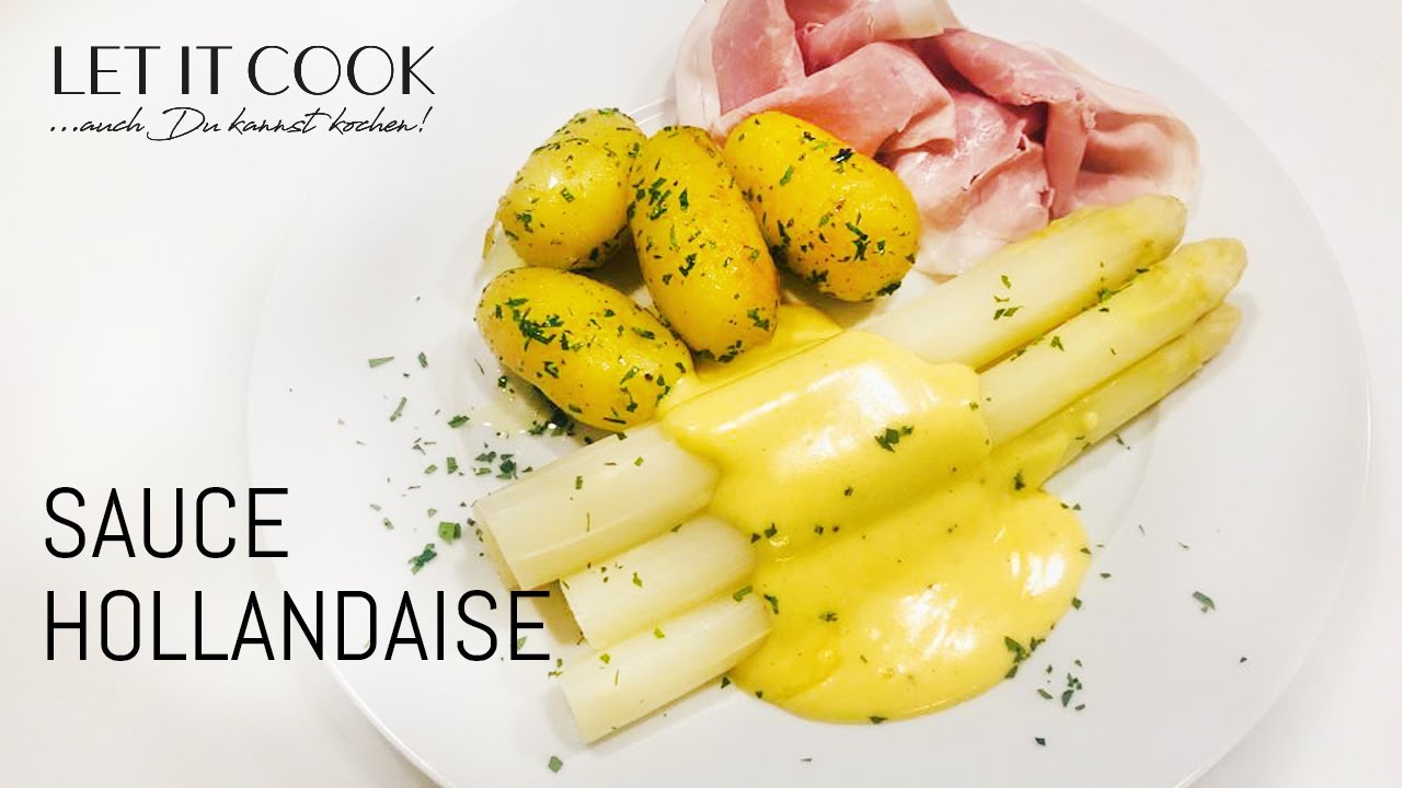 Spargel mit Sauce Hollandaise, Petersilienkartoffeln und gekochtem Schinken (kurz)