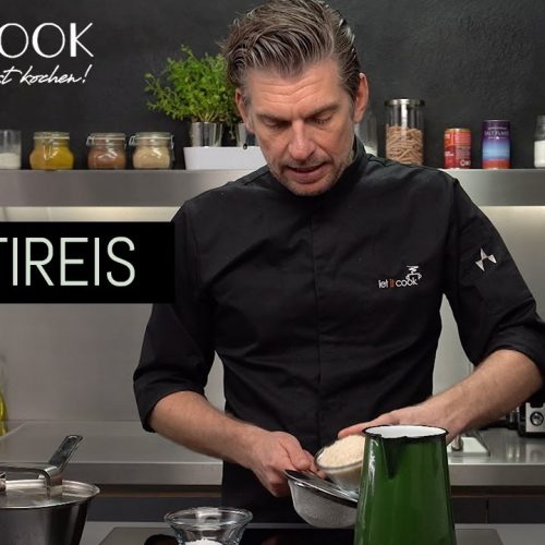 Reis in einem Sieb unter kaltem Wasser gründlich abwaschen