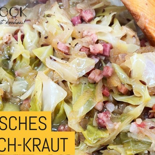 mit Rinderbrühe ablöschen, den Apfel reiben, mit Salz, Essig und Zucker abschmecken