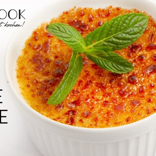 braunen Zucker gleichmäßig auf der Creme verteilen und mit dem Bunsenbrenner hellbraun abflämmen