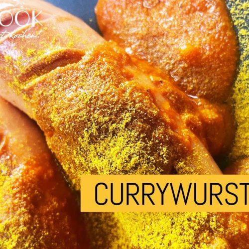 Currysauce mit Würsten anrichten und sevieren