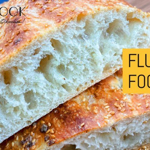 Teig bei 300 Grad 17 min backen, danach mit Wasser besprühen und abkühlen lassen