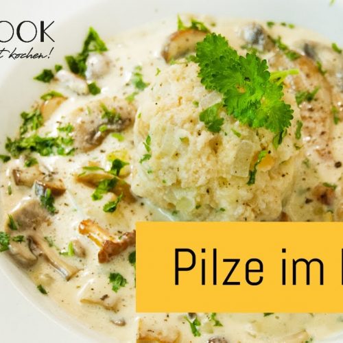 Pilze mit Knödel anrichten und mit Petersilie dekorieren und sofort servieren