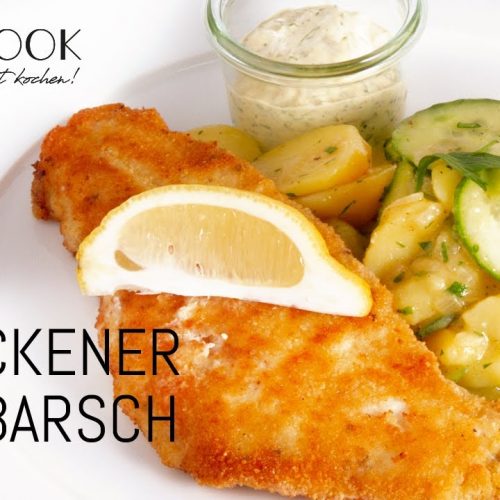 Rotbarsch mit Salz und Pfeffer würzen, dann zuerst in Mehl, Ei und zum Schluss in Paniermehl wenden