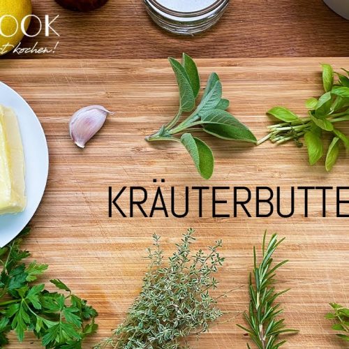 Kräuterbutter auf Frischhaltefolie verteilen und einrollen