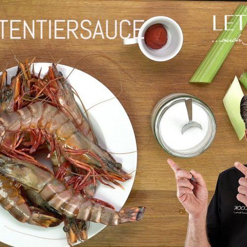 Wasser dazugeben, einkochen lassen und Sahne dazugeben