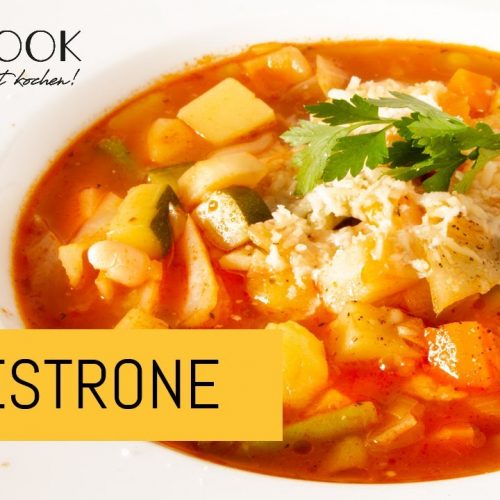 Minestrone in Suppentellern anrichten, pfeffern und mit Parmesan und Olivenöl servieren