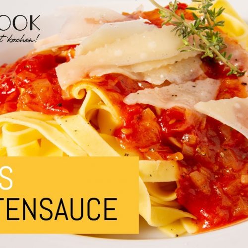 Nudeln mit Sauce anrichten und sofort servieren