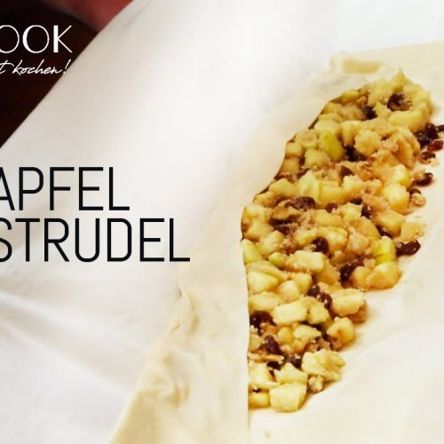 Strudel mit dem Tuch zusammenrollen, und aufs Backblech geben