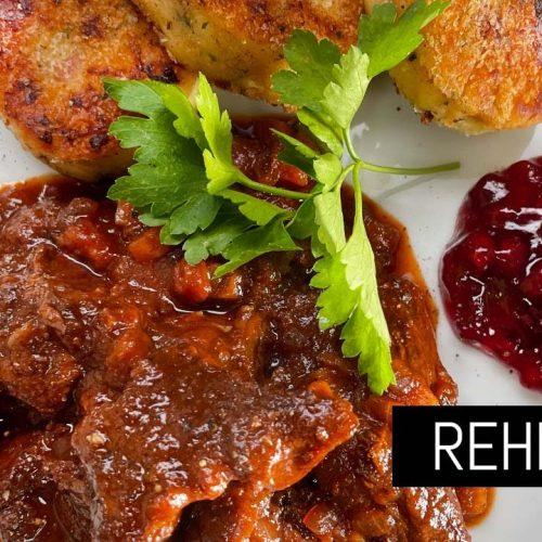 Rehfleisch mit Öl im Topf anbraten, mit Salz und Pfeffer würzen