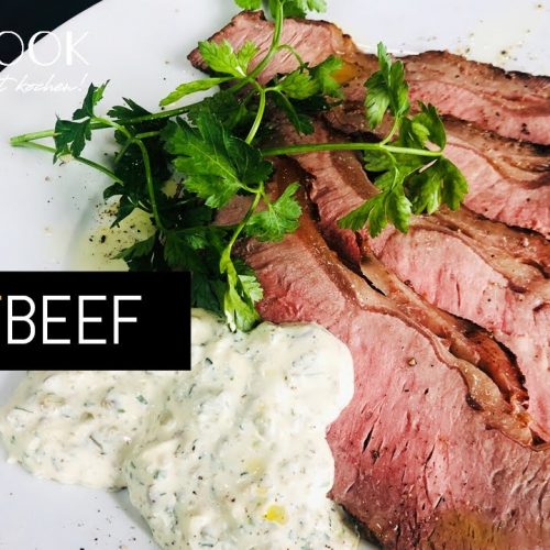 Fleisch dunn aufschneiden und mit Remoulade servieren
