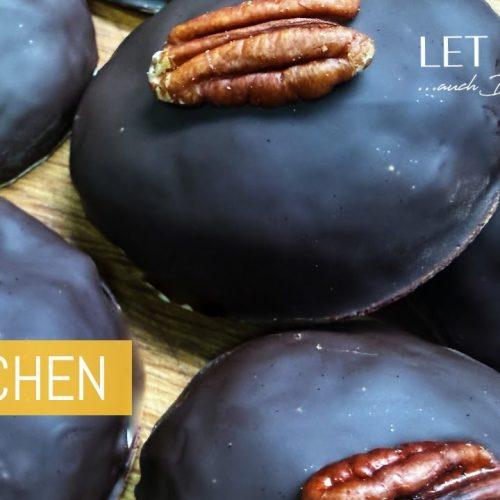 Lebkuchen mit Schokoglasur und Pecannüssen verfeinern