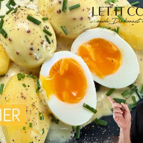 die gekochten Eier in die Soße geben und warmziehen lassen